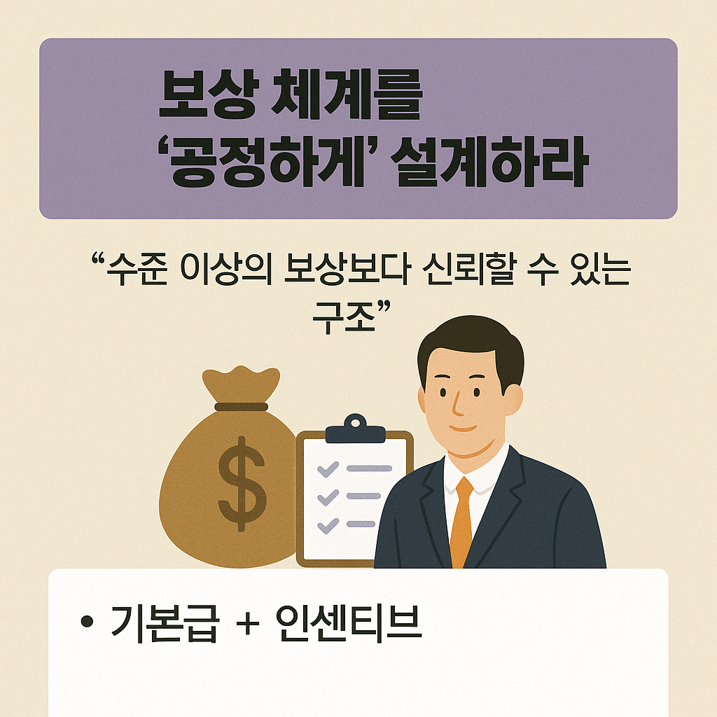 ✅ 5. 보상 체계를 ‘공정하게’ 설계하라
