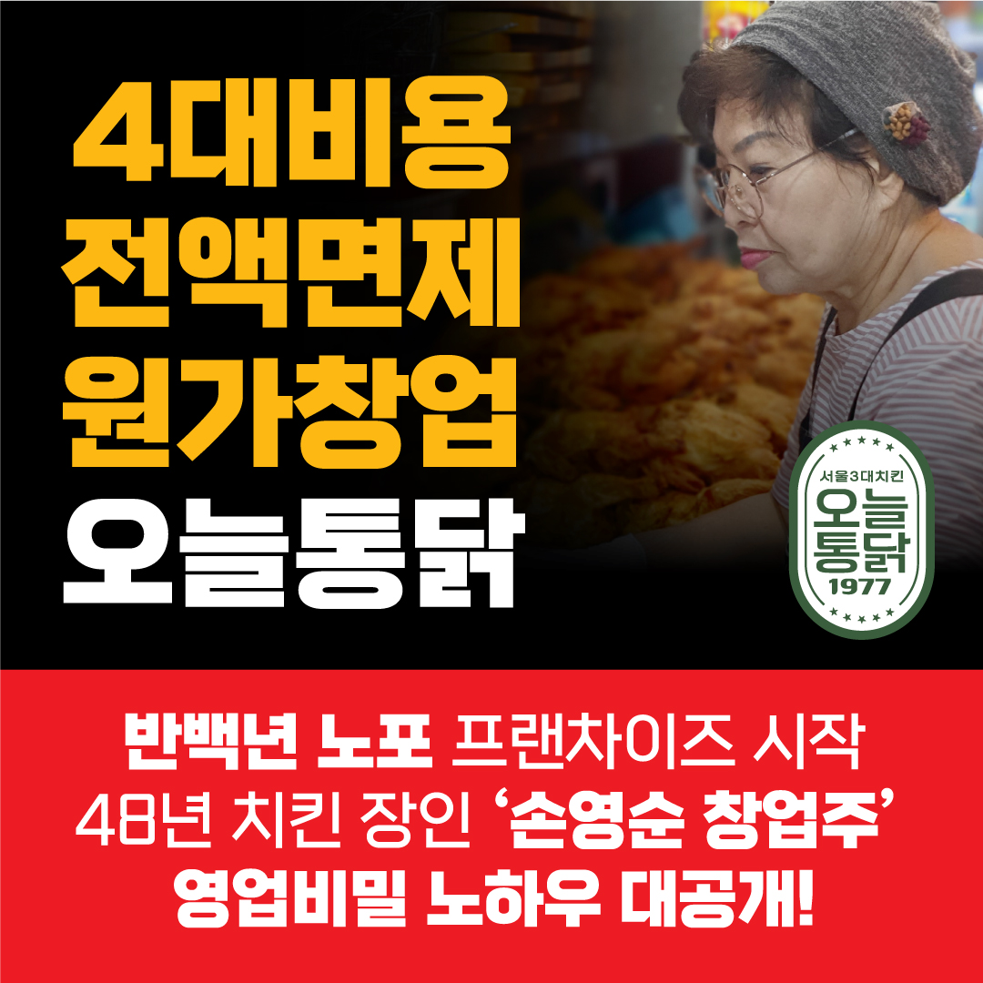 소자본 여성 창업을 고민 중이라면, 48년 전통과 검증된 브랜드, 안정적인 시스템을 갖춘 오늘통닭 1977이 최고의 선택이 될 것입니다. 합리적인 비용, 4천만 원 지원 혜택, 체계적인 지원, 그리고 높은 소비자 만족도로 성공적인 창업을 꿈꿔보세요!