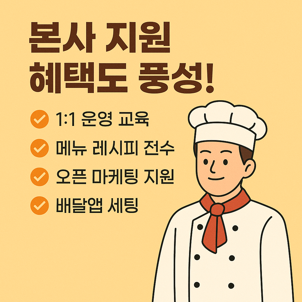 | 본사 지원 | 교육, 배달세팅, 마케팅, 메뉴개발 등 |